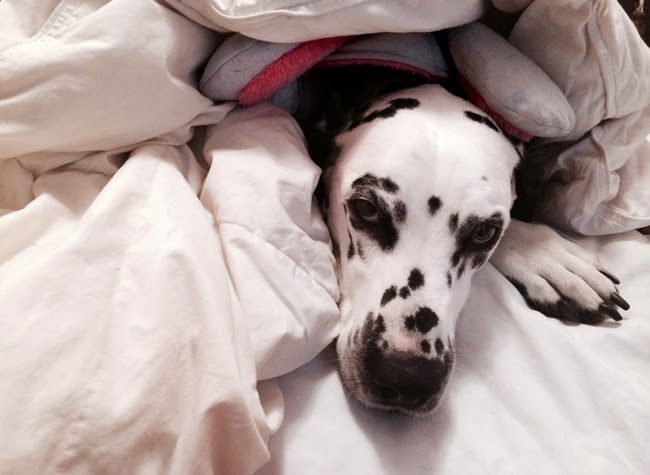 Oh Dutchie, you make a precious bunny and we don't blame you one bit for climbing into bed still in your outfit!