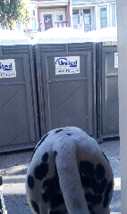 The toilets have landed... right outside our house (please excuse my butt). They just started to make the Pink Triangle. The roads will close soon.